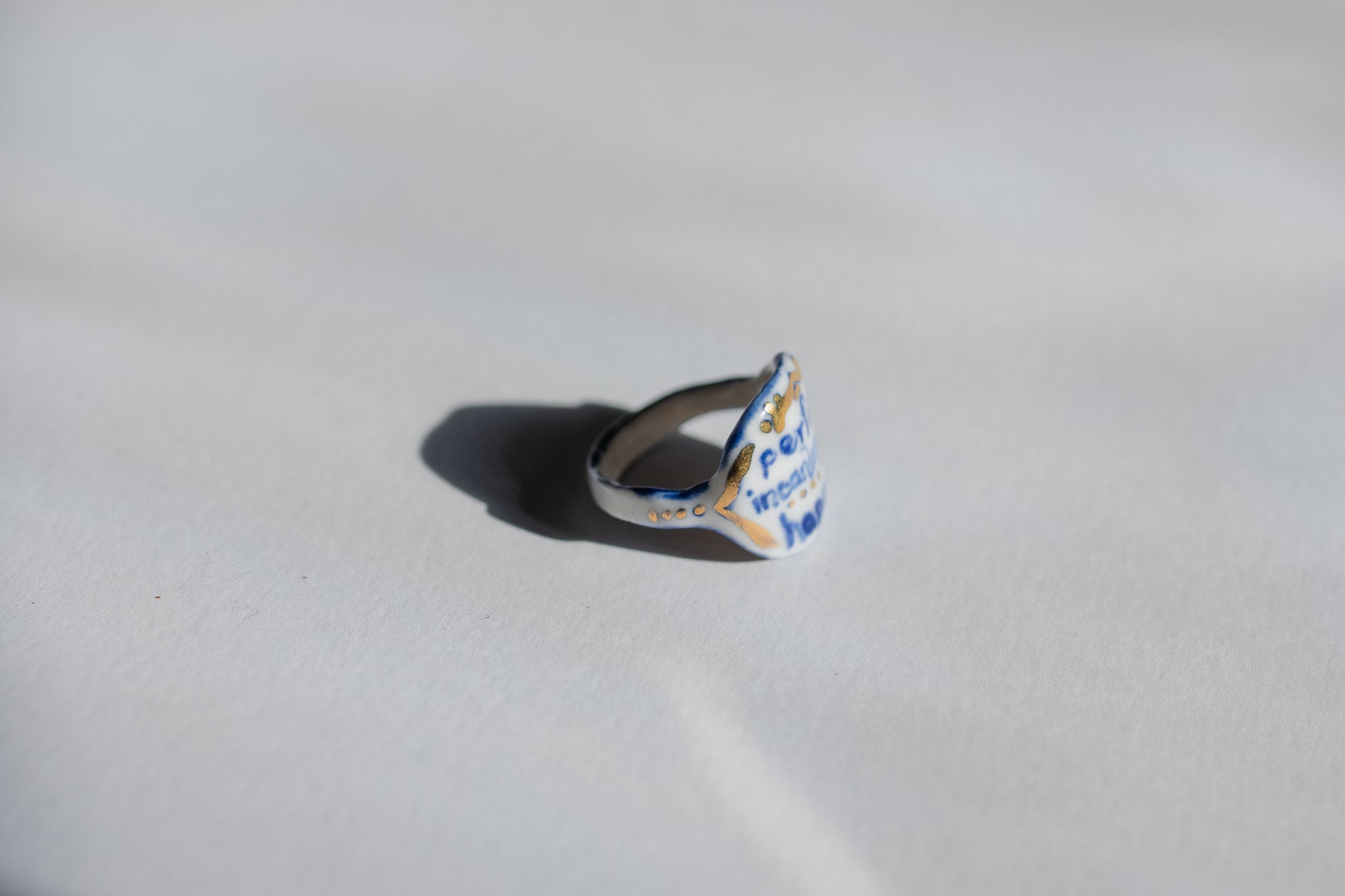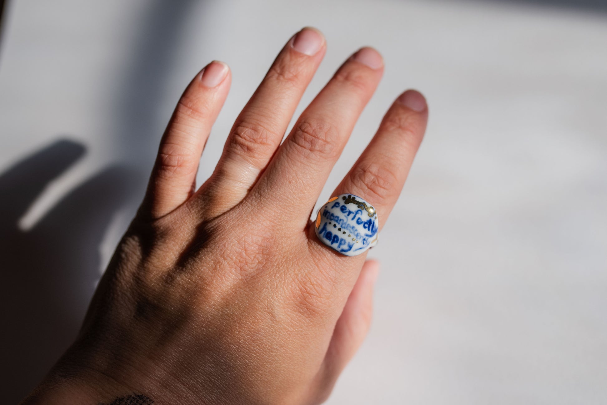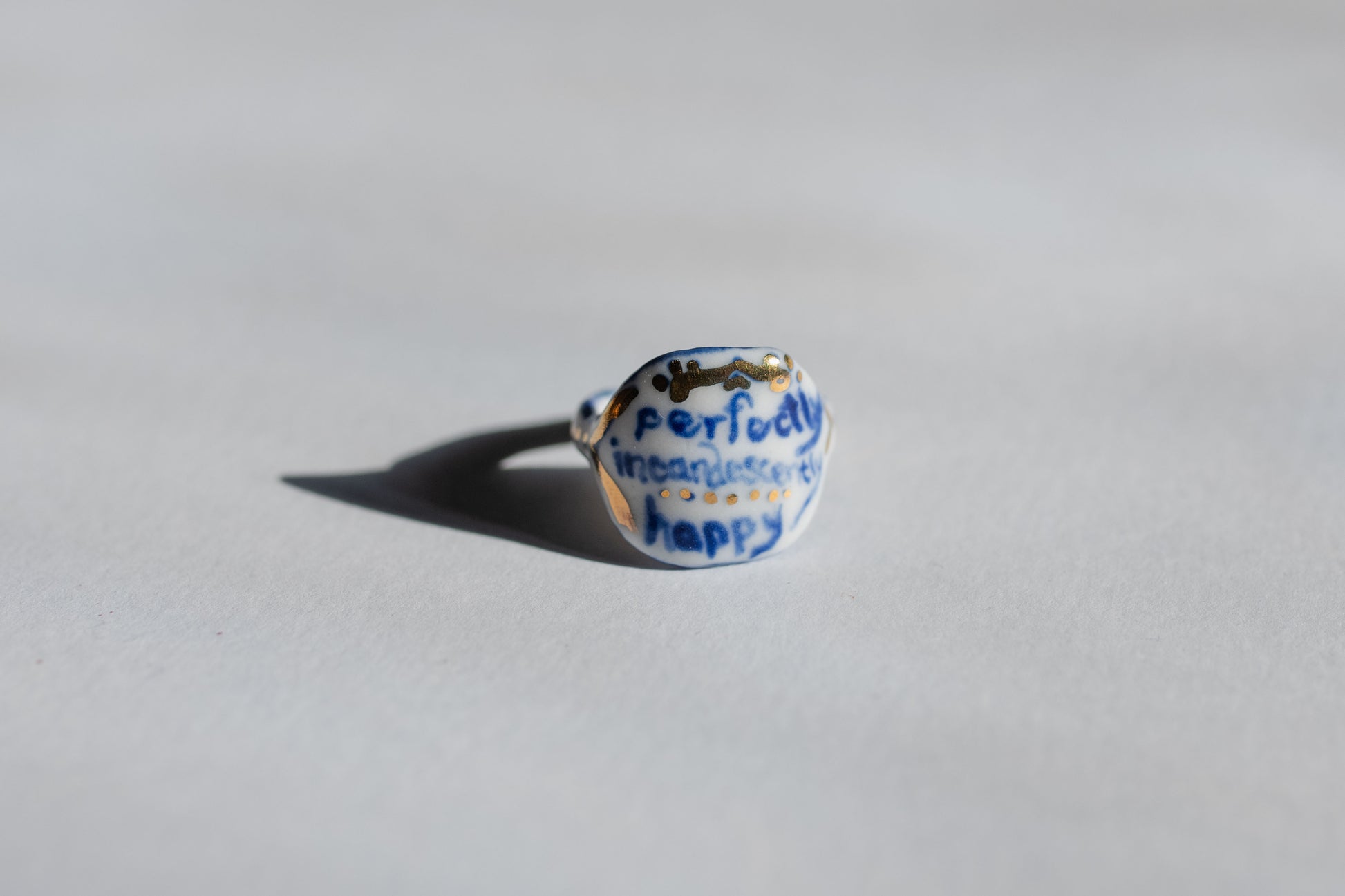Hand-Painted blue details, 22k gold accents, hand-shaped white porcelain, fired three times