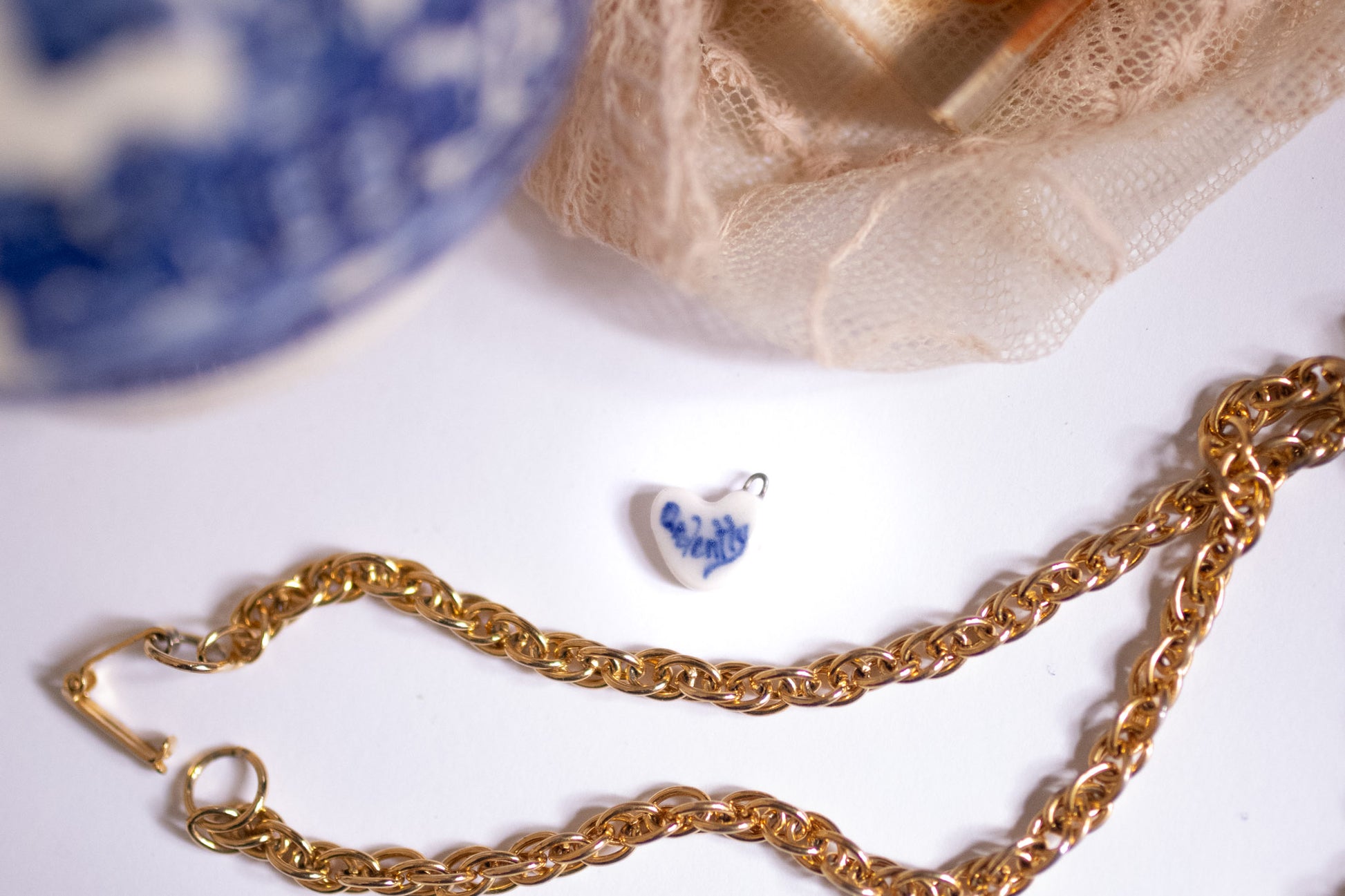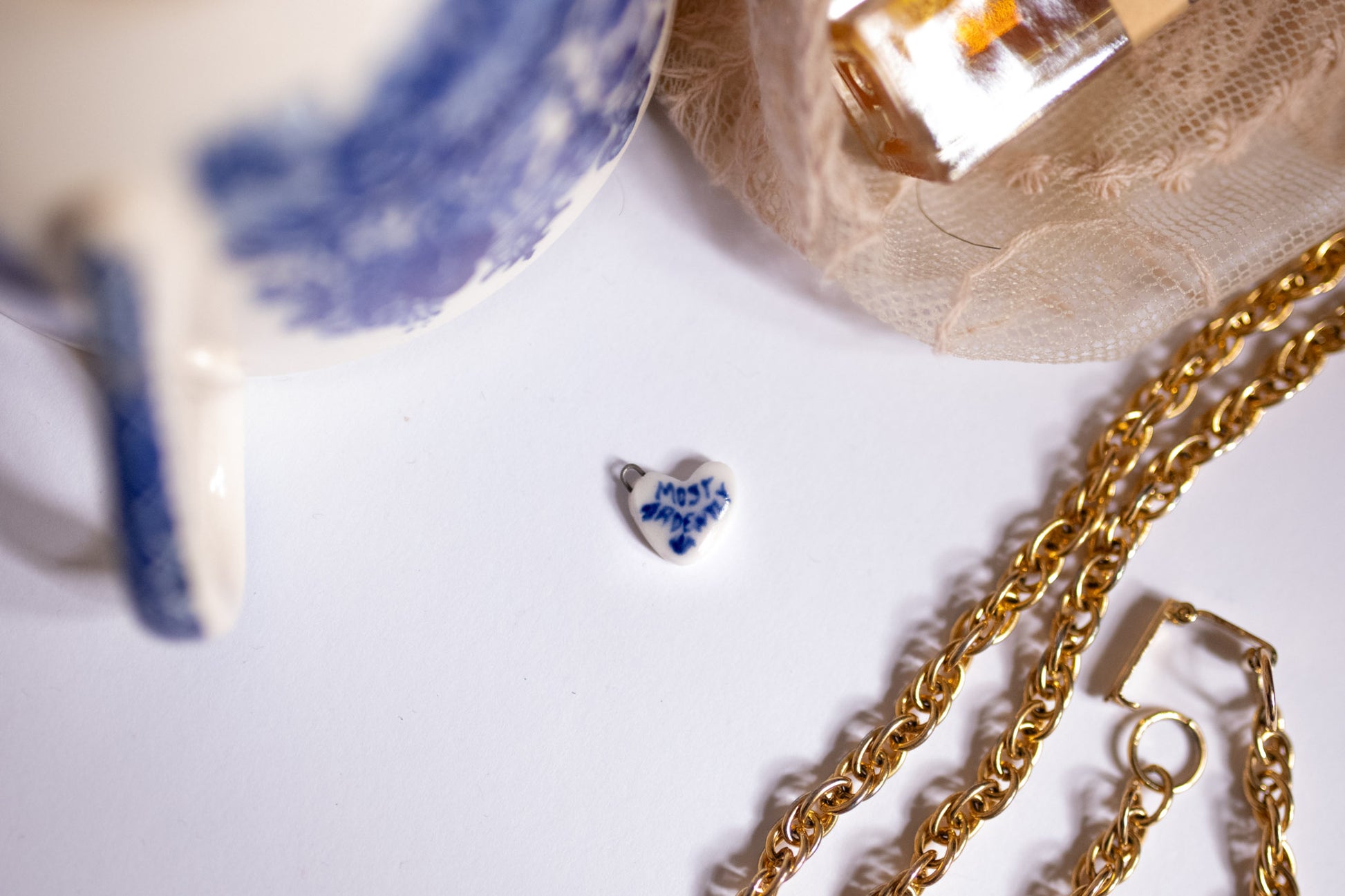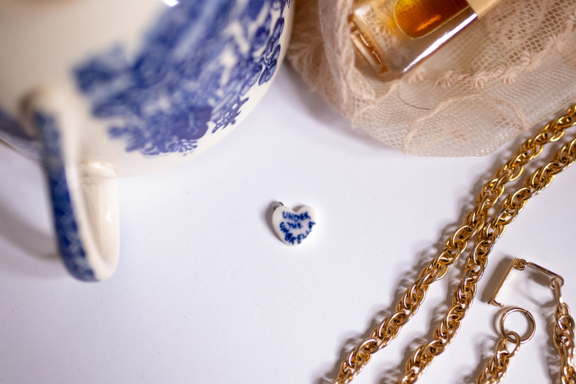 Mini heart charms are slightly less than 1/2" in size, hand painted, sent through two separate high temperature kilns, accompanied by a gold or silver jump ring (depending on the chain chosen, sold separately). Variations are "ardently", "bewitched", "Under the Umbrella", "always", and "Most ardently".