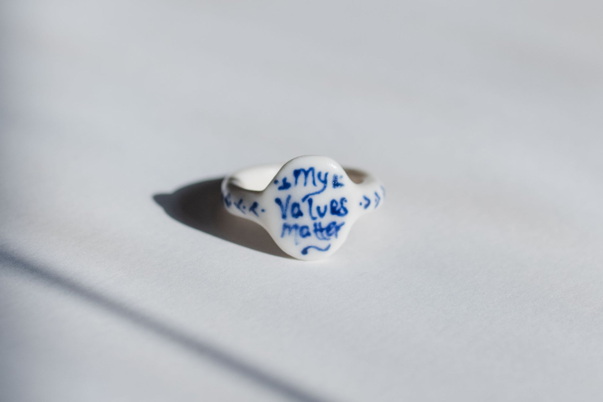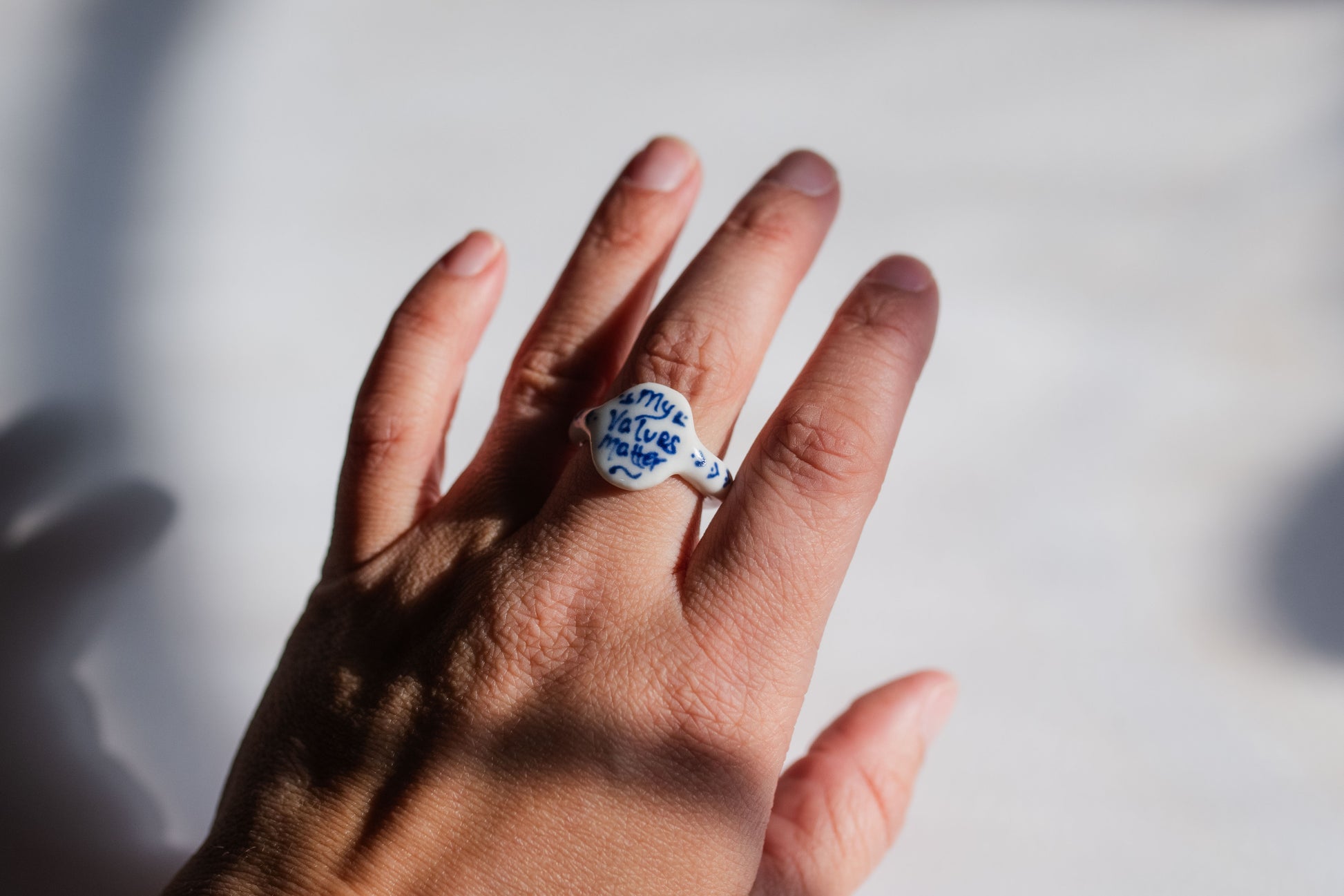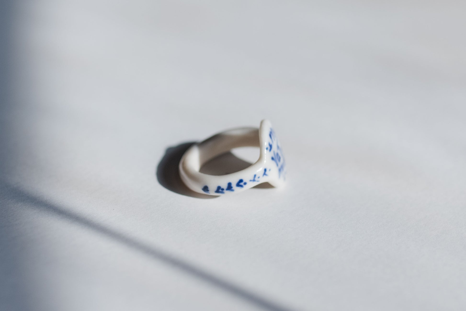 Hand-Painted blue details, hand-shaped white porcelain, fired twice