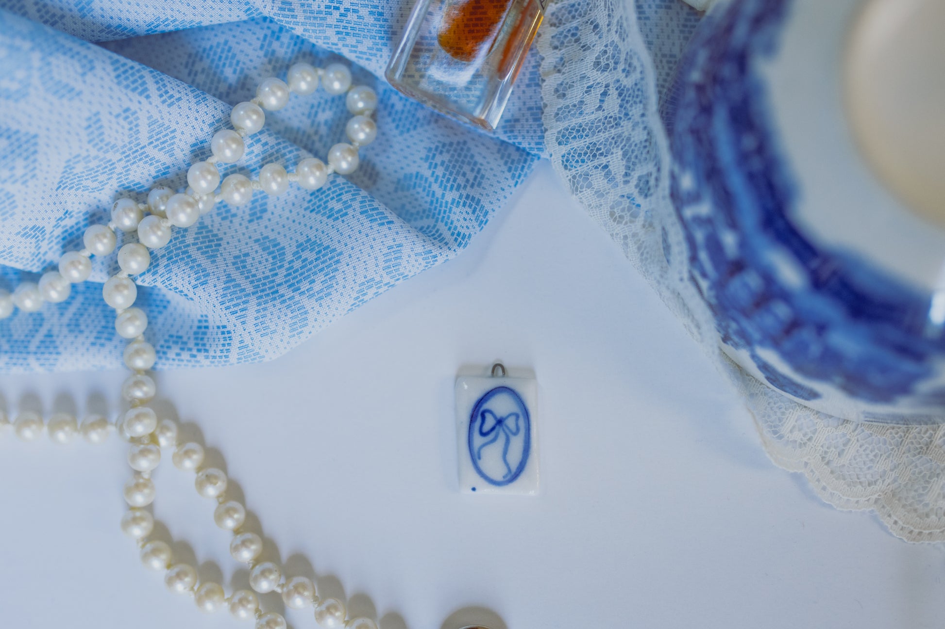 White porcelain with a hand-painted blue design and a clear glaze, these charms have been through two high-temp kilns ensuring their durability and quality. These charms are roughly .75" tall and .5" wide.